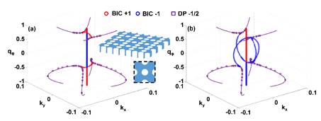 图1.参数空间中低能带与高能带各类型偏振奇点的轨迹