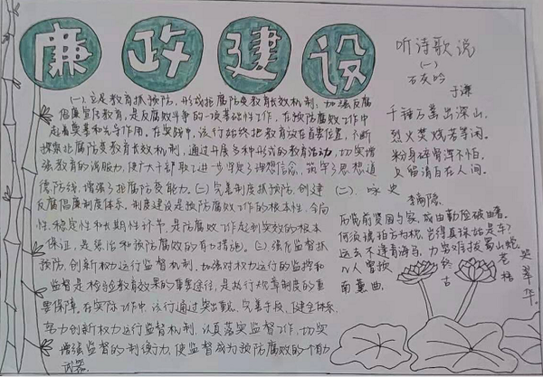 作品简介:自古以来,竹就象征着刚正不阿、坚持自我,而莲花更是廉洁的代表。在当下的时代,我们要如竹如莲一般做事公正廉洁,坚守住自己的初心,为廉政建设贡献一份自己的力量。
