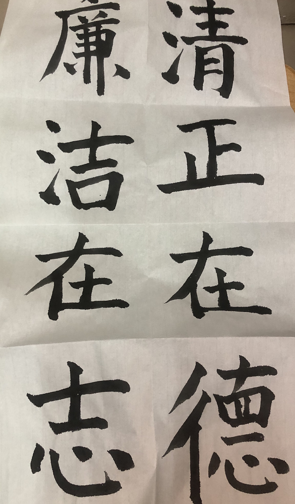 作品简介:“清正在德,廉洁在志。”出自《论语》。这句话的意思是:清正之气的培养在于拥有美好的道德,廉洁之气的培养在于拥有远大的志向。