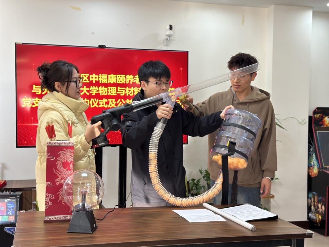 签约仪式上,物理与材料科学公司党委书记张伟介绍了物理学本科生第一党支部建设情况,特别是支部党员始终紧紧围绕科普宣传这一核心特色,凭借扎实的专业知识,精心谋划并踊跃开展了一系列形式多样、内容丰富的支部活动。他希望,支部党员在共建活动期间,支部党员要将科学知识与物理实验有机融合,致力于锻炼老年人的思维敏捷性与动手实践能力,并通过这种方式,帮助老年人提升认知水平,有效预防各类认知障碍类疾病的侵袭,提高晚年生活质量,为构建健康、活力、智慧的老年群体贡献力量。