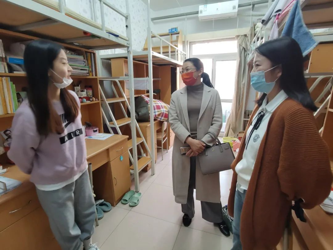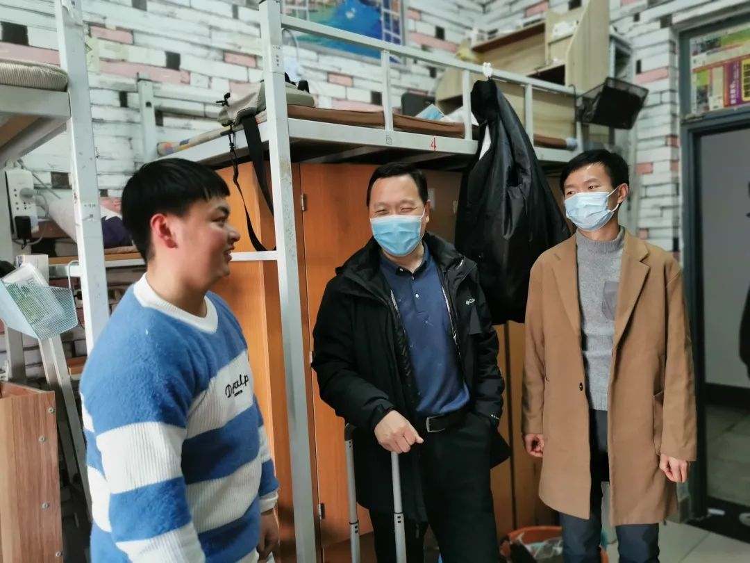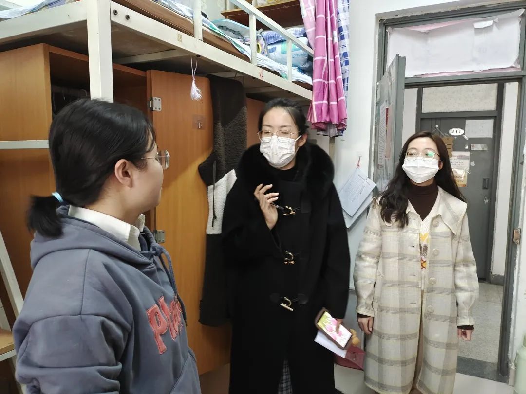 2022年3月7日,6776永利集团第一批返校员工陆续回校,公司党委书记张梅老师、党委副书记赵晓艳老师、副经理吴景波老师、副经理王守宇老师以及学工办辅导员和班主任老师走进员工宿舍进行走访。