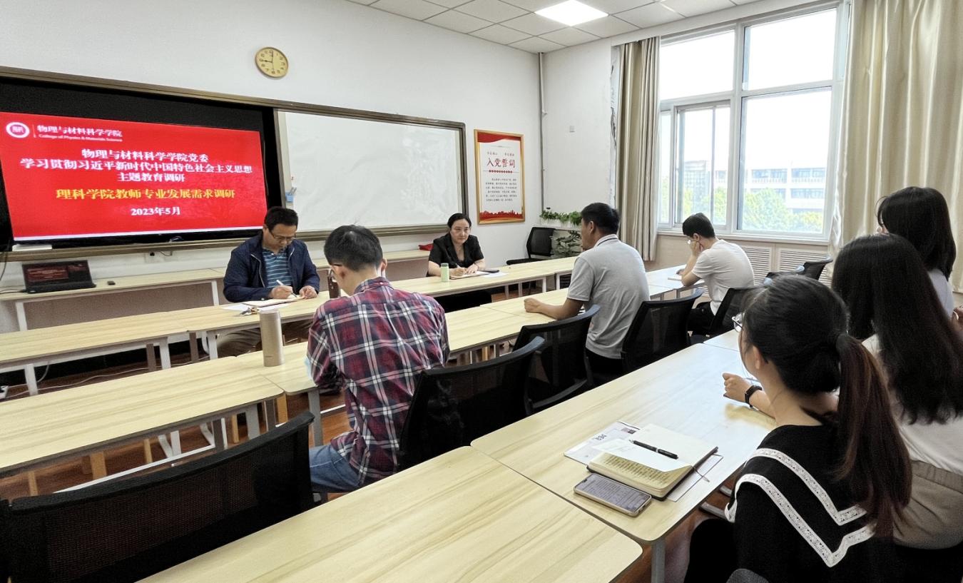 近日,物理与材料科学公司党委开展主题教育调研活动暨本学期青教青研工作坊首讲。公司党委书记张梅,党委副书记、经理黄美东就理科学院教师专业发展需求开展座谈交流,10余名青年教师参加。