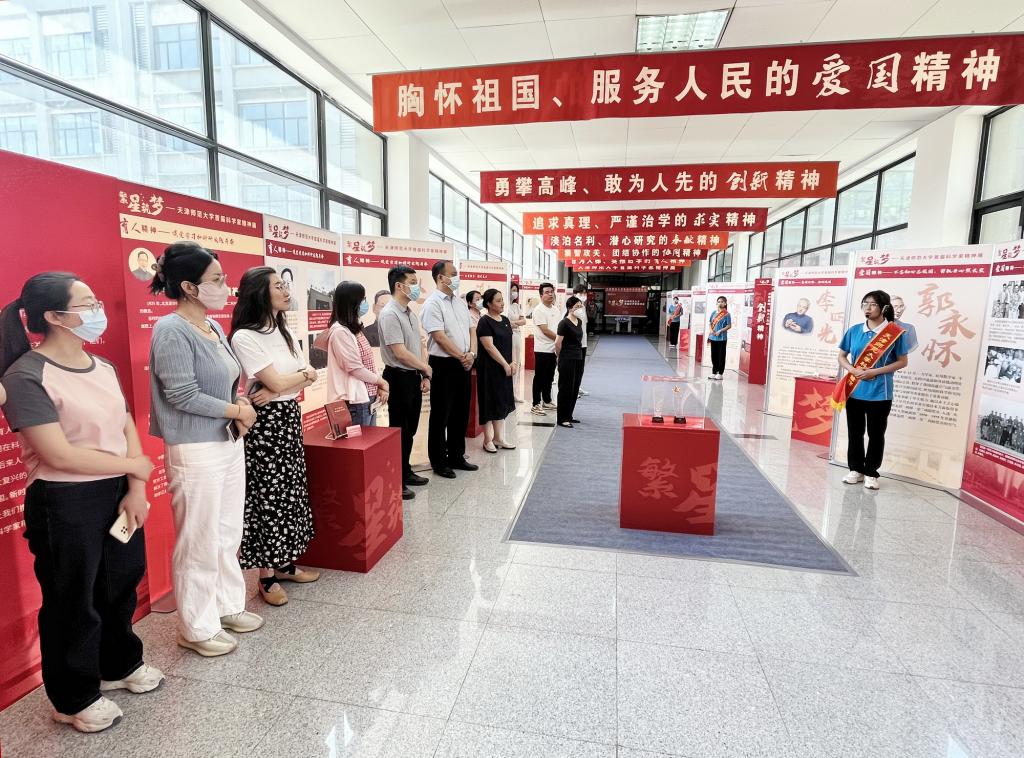 老师们跟随员工志愿者的讲解,通过59块展板和11件展品,认真学习了从李四光、侯德榜、钱学森,到袁隆平、屠呦呦、“北斗”团队等18位科学家及团队的事迹,对以“爱国、创新、求实、奉献、协同、育人”为内涵的科学家精神有了更加深刻的感悟。参观过程中,大家不时地相互交流,热烈讨论,分享各自在教学和科研工作中对科学家精神的理解和体会。