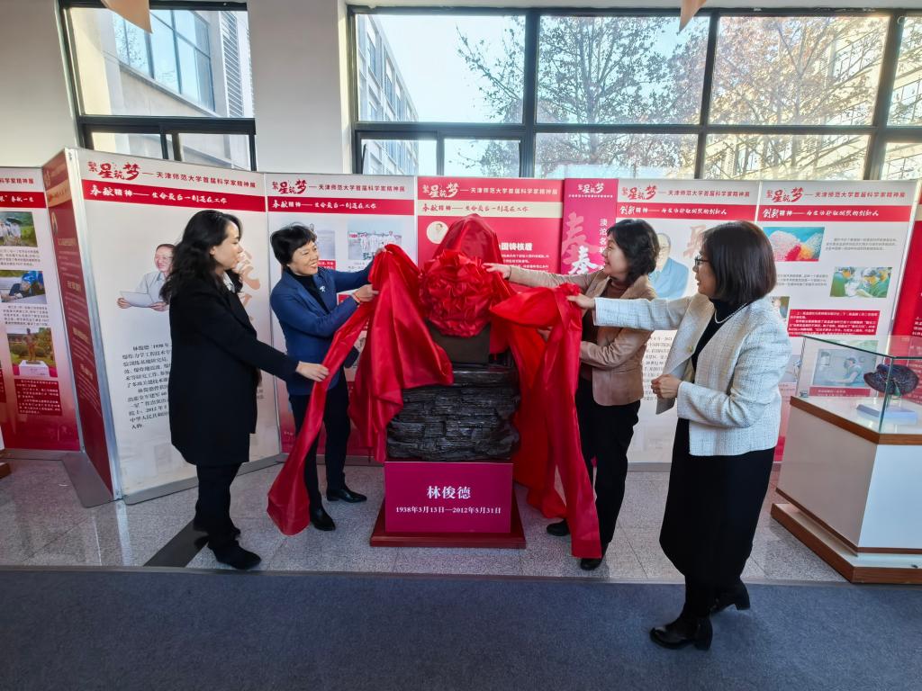 与会领导共同为物理学家林俊德铜像揭幕,现场师生向林俊德院士致以崇高的敬意。刘红英在致辞中表示,林俊德院士是我国著名的物理学家,他的一生都在为祖国的物理学发展贡献着自己的力量,他的精神,是每位师大人学习的榜样。希望全体师生传承科学家精神,以身作则,奋勇争先、建功立业,为建设教育强国、民族复兴贡献师大力量。